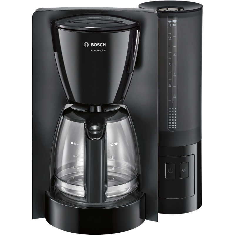 Для приготовления кофе Bosch TKA6A043 использует молотый кофе, поэтому вам следует позаботиться о том, чтобы зерна приобрели именно такую консистенцию. Капельная система гарантирует безупречную чистоту аппарата: поддон машины всегда будет чист, поскольку в него не упадет ни одна капля. Предусмотренная программа удаления накипи позволит автоматически очищать кофемашину, обеспечивая ее долговечность.